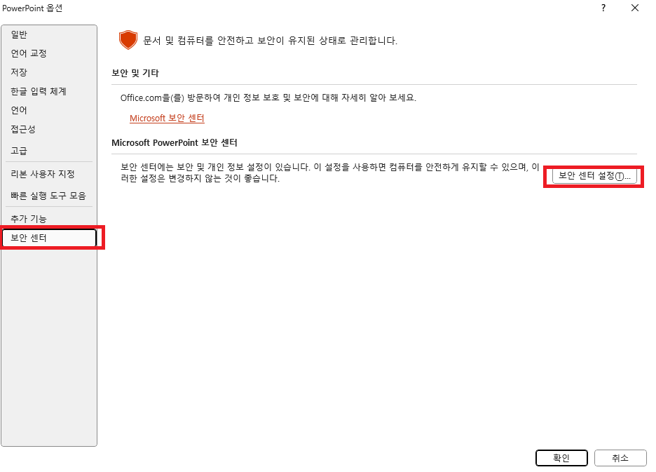 - Office 보안 설정: 외부에서 받은 파일을 보호하기 위한 보안 설정